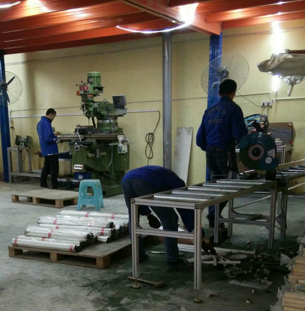 匯利興人正在切割精益管  匯利興人認(rèn)真的對(duì)精益管或鋁型材進(jìn)行鉆銑、切割 匯利興精益管小知識(shí):材料(外部塑料層+中間鐵管+內(nèi)部防銹涂層)、外徑(27.8mm-27mm)、內(nèi)徑(19.5mm-24mm)、鋼管壁厚(0.8-1.5mm)、顏色(米黃、米白、純白、黑色防靜電、藍(lán)色)。