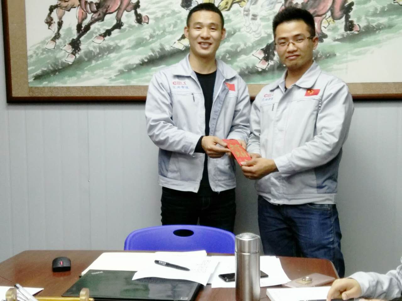 會(huì)議召開(kāi)時(shí)圖貌 會(huì)上,胡總主要以?xún)?nèi)外結(jié)合的方式對(duì)公司發(fā)展進(jìn)行了相應(yīng)的分析及解讀,并提到公司發(fā)展之路----IPO主板之路,我司平臺(tái)、品牌、軟實(shí)力的雄厚;進(jìn)而著重說(shuō)到公司的“倍增計(jì)劃”及內(nèi)部員工KPI考核、6S管理等制度,并表示一個(gè)企業(yè)的發(fā)展是贏在轉(zhuǎn)折點(diǎn)而不是起點(diǎn)同時(shí)期望每個(gè)人用心去做好每件事情,多細(xì)心、多仔細(xì),進(jìn)而提到公司一系列相關(guān)福利及部門(mén)獎(jiǎng)。 胡偉路總經(jīng)理(圖左)與月度之星張國(guó)桃戰(zhàn)士(圖右)同框合影 月度之星進(jìn)行的也有一個(gè)季度的年輪了,隨著時(shí)間的洗禮也徜徉著一份責(zé)任也彰顯了一份愛(ài),對(duì)家及家人的一份愛(ài),但就是由于這份責(zé)任與愛(ài)讓大家緊連著心、團(tuán)結(jié)一致去努力。對(duì)于“張國(guó)桃”戰(zhàn)士的奉獻(xiàn)與努力,對(duì)于他的默默奉獻(xiàn)及關(guān)懷,大家早已銘記于心并十分感激,同時(shí)在此也感謝他對(duì)于公司及同事的無(wú)私奉獻(xiàn)及默默關(guān)懷。
