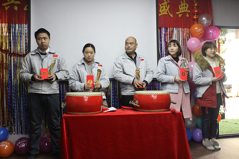 時(shí)光荏苒,歲月如梭?;仡?017年,我們無(wú)比自豪,展望2018年,我們信心百倍。新的一年,新的目標(biāo),新的征程,不忘初心、奮發(fā)圖強(qiáng)、創(chuàng)造輝煌。 會(huì)議主題:新征程、新跨越、新作為,積極向上,開(kāi)源節(jié)流,倍增業(yè)績(jī)!在2018年2月3日下午13時(shí),匯興家人齊聚在匯利興學(xué)校隆重舉行2017匯利興年度會(huì)議盛典會(huì)議主持人:石樂(lè)歡 團(tuán)結(jié)就是力量,這力量是鐵,這力量是鋼......伴隨著激情高昂的歌唱聲及匯興家人的共同心聲緩緩從竹林小道入場(chǎng)了。緊接著家人們?cè)诤飞侠酉伦约旱氖种赣?,寓意著匯興家人們堅(jiān)韌不拔,奮勇當(dāng)先,自強(qiáng)不息,團(tuán)結(jié)協(xié)作的精神品質(zhì)。 匯利興家人緩緩進(jìn)入竹林小道圖 匯利興家人緩緩進(jìn)入竹林小道圖2 俗話(huà)說(shuō)“四方進(jìn)寶、八方來(lái)財(cái)”,開(kāi)場(chǎng)由客服部四大美女帶來(lái)“抓錢(qián)舞”的精彩表演,由此整個(gè)會(huì)議正式拉開(kāi)序幕。“人道、孝道、商道”是匯利興一直以來(lái)遵循的職業(yè)道德,開(kāi)場(chǎng)對(duì)其進(jìn)行三鞠躬來(lái)表達(dá)我們匯興人的職業(yè)道德。用情做人、用心做事的企業(yè)文化深入人心;忠誠(chéng)團(tuán)結(jié)、勤奮進(jìn)取的團(tuán)隊(duì)精神讓我們一次又一次的面對(duì)困難而挑戰(zhàn)成功,就像我們匯利興之歌中所說(shuō)的(相信我們會(huì)創(chuàng)造奇跡),我們一起努力、我們永遠(yuǎn)珍惜,成長(zhǎng)歲月里,我們是團(tuán)結(jié)的集體,以用情做人、用心做事的精神定會(huì)創(chuàng)造奇跡、不斷前進(jìn)。 匯利興全體家人依次對(duì)企業(yè)三道“人道、孝道、商道”行三鞠躬 看著2015-2017年的工作縮影,一張張熟悉的和陌生的面孔,訴說(shuō)著曾經(jīng)我們一起戰(zhàn)斗,有過(guò)淚水,有過(guò)歡笑,能夠走到今天是我們大家共同努力的結(jié)果。不忘初心、牢記使命,回首過(guò)去展望未來(lái),公司的快速發(fā)展和進(jìn)步離不開(kāi)每個(gè)人的辛勤付出與奉獻(xiàn),相信未來(lái)我們無(wú)比輝煌。 煽情的畫(huà)面總是讓氣氛有點(diǎn)壓抑,所以激情高昂的抽獎(jiǎng)緊接著開(kāi)始了。每個(gè)人都希望自己能夠中獎(jiǎng),但獎(jiǎng)項(xiàng)有限,到底會(huì)花落誰(shuí)家呢?最開(kāi)始揭曉的是四五等獎(jiǎng)項(xiàng),在這里不得不提一下我們的籌備小組,獎(jiǎng)的名字都是用我們公司的產(chǎn)品命名的,一下子就拉近了相互之間的距離。獎(jiǎng)項(xiàng)是由隨機(jī)抽選的匯利興家人揭曉的,緊接著胡偉路總經(jīng)理頒發(fā)愛(ài)心基金和優(yōu)秀員工獎(jiǎng)。 四、五等獎(jiǎng)獲得者合影 愛(ài)心基金家人鄧筵暉(圖左)與胡偉路總經(jīng)理(圖右)合影 優(yōu)秀員工熊學(xué)斌(從左圖1)和石樂(lè)歡(圖3)與胡偉路總經(jīng)理(圖2)合影 孔子言:溫故而知新,可以為師矣,因此只有不斷總結(jié)、革故鼎新才能越走越強(qiáng),一個(gè)人如此一個(gè)團(tuán)隊(duì)如此一個(gè)企業(yè)更因如此。會(huì)上,張副總對(duì)2017年度工作作了總結(jié),首先談到2017年家人們的努力及付出、公司的發(fā)展及進(jìn)步同時(shí)也談到2017年度工作中的不足同時(shí)希望大家2018年不僅要摒棄不足還應(yīng)不斷創(chuàng)新、齊心協(xié)力、積極向上、開(kāi)源節(jié)流、定能倍增業(yè)績(jī)、再創(chuàng)奇跡。然后對(duì)2017年度個(gè)人獎(jiǎng)進(jìn)行頒發(fā)獎(jiǎng)杯(最佳進(jìn)步獎(jiǎng)、最佳成長(zhǎng)獎(jiǎng)、最佳奉獻(xiàn)獎(jiǎng)、最佳忠誠(chéng)獎(jiǎng)、最佳付出獎(jiǎng))。 從左往右最佳奉獻(xiàn)獎(jiǎng)(徐財(cái)華)、最佳忠誠(chéng)獎(jiǎng)(姜英)、最佳付出獎(jiǎng)(周榮)、最佳進(jìn)步獎(jiǎng)(何歡)、最佳成長(zhǎng)獎(jiǎng)(夏鑫玉) 此后,各部門(mén)代表作相應(yīng)年度述職(財(cái)務(wù)部獎(jiǎng)、采購(gòu)部獎(jiǎng)、客服部獎(jiǎng)、物控部獎(jiǎng))及胡總宣讀人事任命(仇春華任命為倉(cāng)庫(kù)主管助理、周榮任命為生產(chǎn)主管、蒲曾紅任命為客服部經(jīng)理)。 各部門(mén)年度述職合影圖 人事任命合影圖 然后由胡偉路總經(jīng)理授予客服部、銷(xiāo)售部、采購(gòu)部、財(cái)務(wù)部、物控部等代表授予兩把刷子,希望匯利興家人們帶著胡偉路總經(jīng)理所授予的兩把刷子盡最大的努力刷出匯利興的藍(lán)圖、刷出夢(mèng)想的藍(lán)圖。 胡偉路總經(jīng)理授予客服部、銷(xiāo)售部、采購(gòu)部、財(cái)務(wù)部、物控部等代表兩把刷子合影圖 二、三等獎(jiǎng)獲得者合影圖 隨年會(huì)時(shí)間的推移,匯利興(重慶)公司2017年度會(huì)議已逐步進(jìn)入下篇階段:會(huì)上,胡偉路總經(jīng)理表示,在2017年里通過(guò)各部門(mén)的共同努力及奮斗下逐步接近我們的目標(biāo)同時(shí)表示在整個(gè)年度中各部門(mén)配合力度有待提高、物控部及采購(gòu)部等部門(mén)工作進(jìn)度有待提高等進(jìn)一步談到2018年匯利興整體目標(biāo)及公司的發(fā)展方向力爭(zhēng)開(kāi)源節(jié)流,倍增業(yè)績(jī)!然后對(duì)最佳團(tuán)隊(duì)獎(jiǎng)、最佳銷(xiāo)售冠軍獎(jiǎng)的頒發(fā)。 最佳團(tuán)隊(duì)-銷(xiāo)售部全體人員合影圖 最佳
