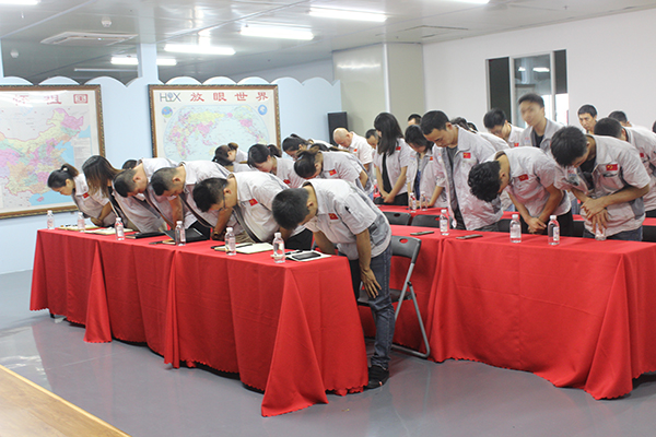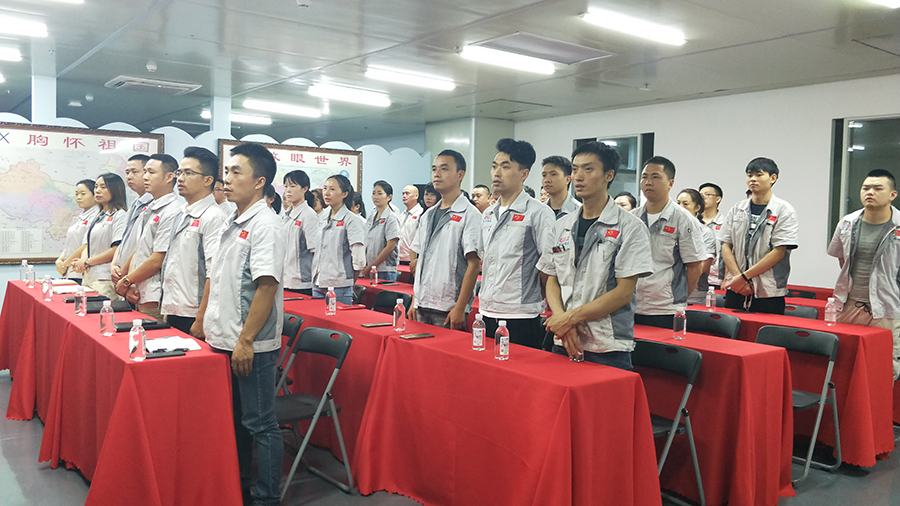 有大家才能有小家,升國(guó)旗唱國(guó)歌。全體員工精神抖擻,一起唱響國(guó)歌-五星紅旗迎風(fēng)飄揚(yáng).....從今走向繁榮富強(qiáng),現(xiàn)場(chǎng)聲音嘹亮、士氣如虹,著實(shí)展現(xiàn)了祖國(guó)兒女、新時(shí)代接班人的精神面貌。 會(huì)議開始,全體員工整肅衣冠,對(duì)倍加推崇的孝道、商道、人道鄭重鞠躬,莊嚴(yán)宣誓企業(yè)愿景:“成為全球領(lǐng)先的智能自動(dòng)化產(chǎn)業(yè)鏈集成服務(wù)商”,企業(yè)使命:做受尊敬的好人,造受尊敬的產(chǎn)品,辦受尊敬的企業(yè),建受尊敬的平臺(tái),企業(yè)精神“用情做人、用心做事”,團(tuán)隊(duì)精神“忠誠(chéng)團(tuán)結(jié)、勤奮進(jìn)取”,工匠精神:創(chuàng)于手、精于工、智于器、匠于心、品于行等。