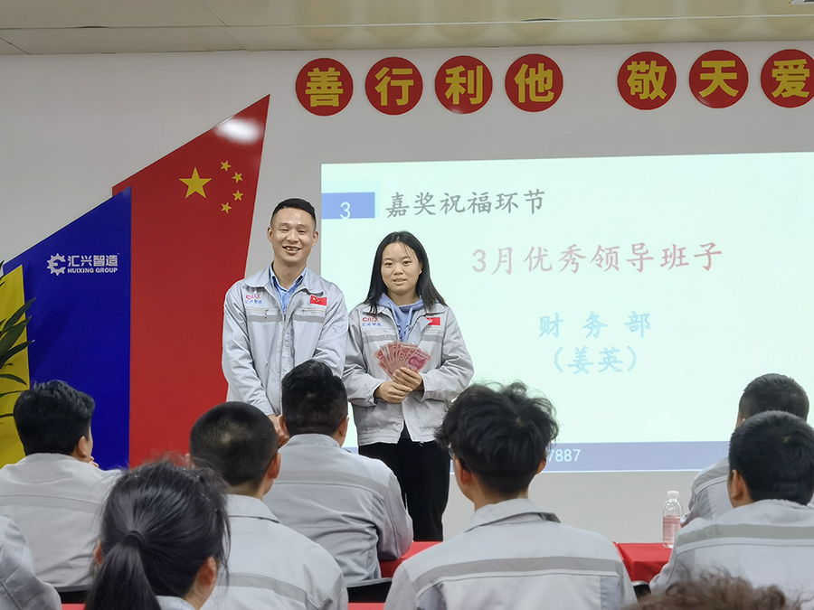 業(yè)精于勤,荒于嬉,行成于思,毀于隨??偨Y上個月工作情況,統(tǒng)籌下一個月工作計劃。匯利興西南工廠于4月9日18點40分,在匯利興學校召開三月月度會議。銷售主管劉文主持,匯利興西南工廠全體職員參會。會議開始,兩位高管敲響士氣鼓,敲響我們出征的號角,前進的戰(zhàn)鼓,鼓舞著每位員工沖鋒打勝仗的決心和毅力。全體員工向企業(yè)三道孝道、商道、人道鄭重鞠躬,宣讀企業(yè)文化,并對本月新入員工進行歡迎儀式。 春天是播種的季節(jié),同時也是催人奮進的季節(jié)。為了表彰在三月份表現(xiàn)突出的優(yōu)秀個人、優(yōu)秀主管、優(yōu)秀部門,充分發(fā)揮引領示范作用,最大限度調(diào)動和激發(fā)員工向優(yōu)秀人員看齊、不斷提高工作的積極性和創(chuàng)造性。本次榮獲優(yōu)秀員工(曾濤、邵靜、鄧筵暉)、優(yōu)秀主管(姜英)、優(yōu)秀部門(綜合部)。自成立以來,公司大力宣導我來干、努力干、拼命干的工作作風,積極鼓勵無私奉獻、恪盡職守的三好匯興人,并堅持打造一支有愛、有力量、有活力的團隊。