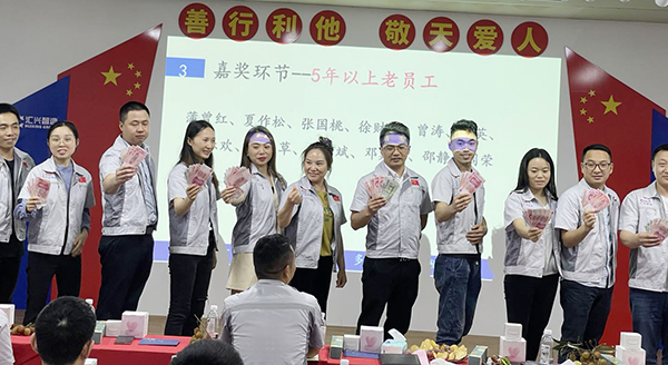 老員工代表夏佐松發(fā)表感言。夏經(jīng)理表示對于我而言,公司就是我的家,五年、十年這不是簡單的數(shù)字,是我對家的愛,是我藏于心中的一份情,同時十年也是匯利興一段光輝的歷程?;叵雱傔M(jìn)匯利興的面貌再到今天,公司發(fā)生了質(zhì)的飛躍,十年匯利興人共同的奮斗,十年不懈的探索與實(shí)踐,十年的積累與沉淀,更是離不開領(lǐng)導(dǎo)的決策和大家的努力,也正是因?yàn)橛羞@樣一群人在公司領(lǐng)導(dǎo)的帶領(lǐng)下,不斷助推著公司前行,突破!咱們的家才會越來越優(yōu)秀!在此,再次祝賀公司十周年生日快樂! 總部及各分子公司送祝福及慶祝十周年生日。隨著一曲歡快的生日音樂正式拉開十周年慶典儀式,董事長及各分子公司對重慶工廠的聲聲祝福,讓在場的每一個人都激動萬分,處處洋溢著滿滿的熱情,處處見證了重慶十年的奮斗歷程!中層管理人員共同點(diǎn)燃十根蠟燭,象征著匯利興重慶工廠業(yè)績蒸蒸日上、鴻運(yùn)相伴永久,隨后全體匯利興人一起唱響生日歌,一起慶祝重慶十周年生日快樂!