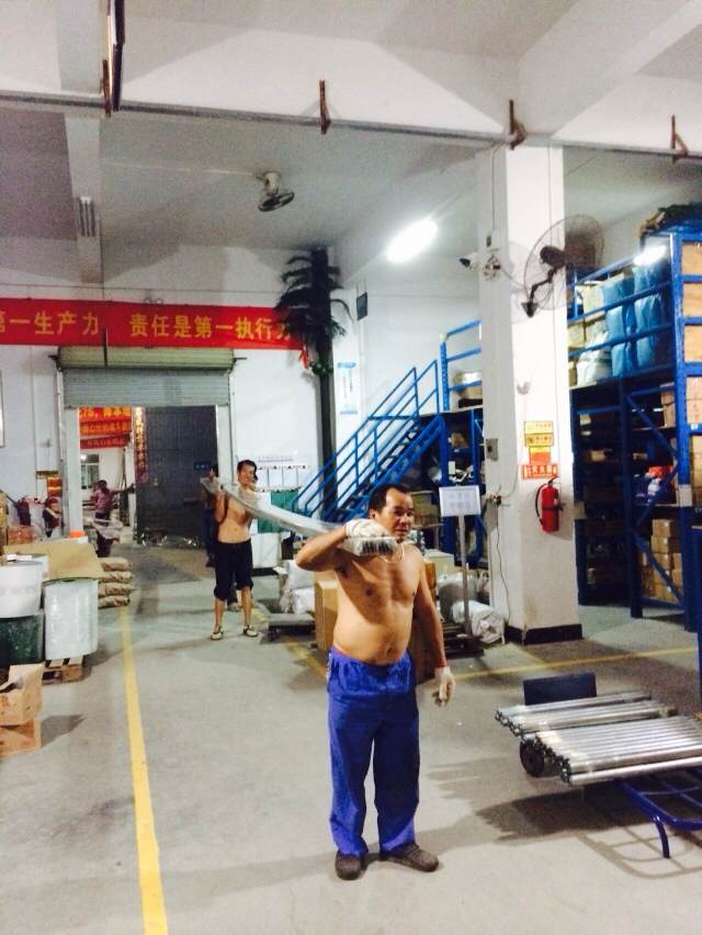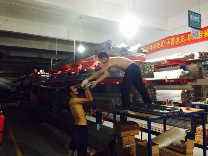 怎么玩耍;但是我司的車間里依然緊張忙碌著。由于我司自行開模的工業(yè)鋁型材今日到貨八十余萬(wàn)元,滿滿的兩大卡車鋁材要馬上卸貨。我司戰(zhàn)士二話不說(shuō),加班加點(diǎn),開足馬力,努力工作著。