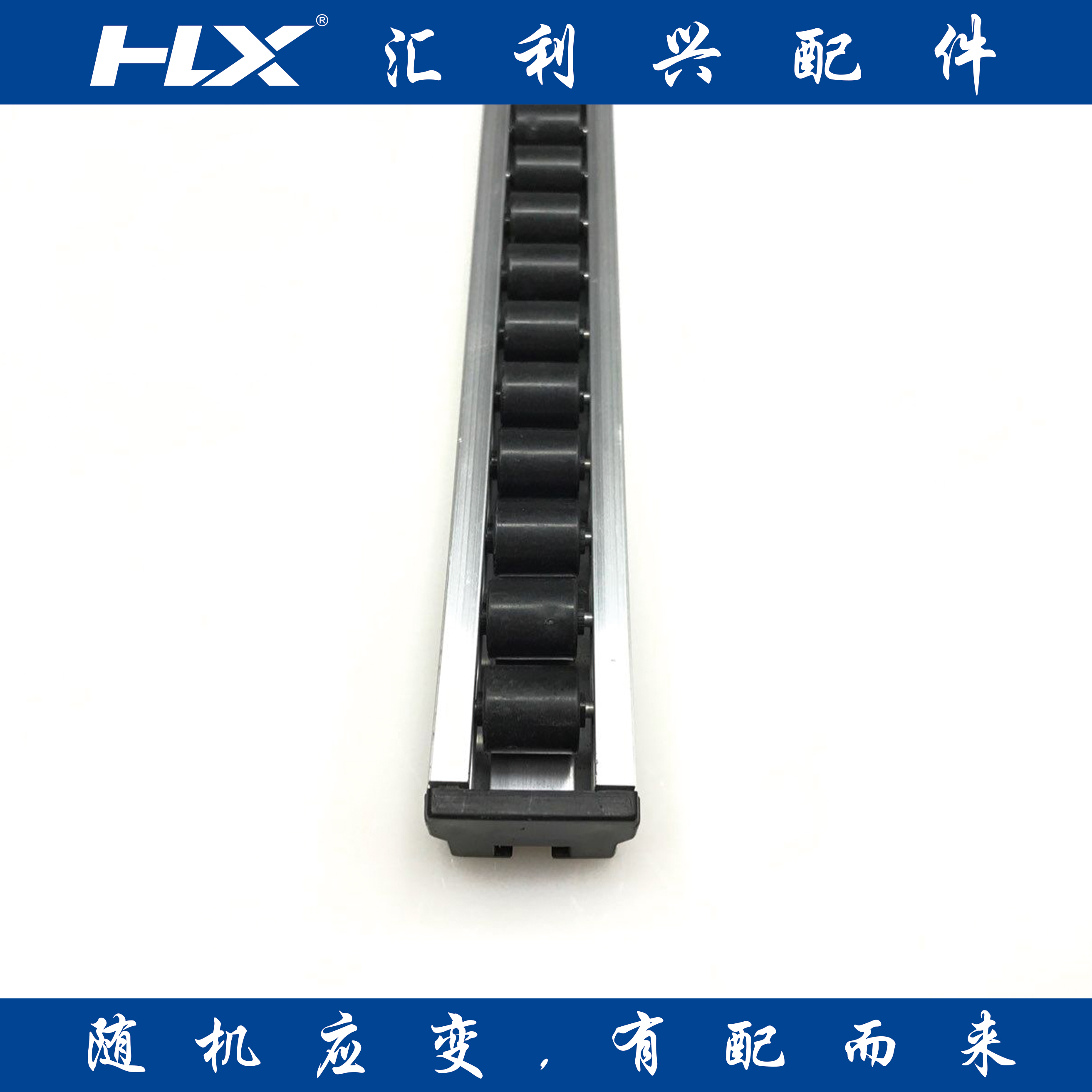 匯利興產(chǎn)品這流水線配件流利條系列,流利條主要用于輸送、倉儲系統(tǒng)配套產(chǎn)品,可用作滑軌、護欄、導向裝置、滾動性能好、成本低。滾輪采用高品質(zhì)的熱塑性塑料制成,具有摩擦系數(shù)小、抗沖擊、壽命長、耐酸堿性、耐潮溫等優(yōu)點。當貨物重量超過額定的負荷時,可在一個通道安裝多根流利條。安裝傾斜度取決于重量以及流利架的深度,一般3O~6O(5%~9%)。通常在深度方向上每隔600mm~800mm安裝一根支撐梁以增強流利條的剛度。滾輪顏色可選:黃色,藍色,白色,黑色等其他顏色。輪距常用為:35mm,45mm  并可以根據(jù)實際使用情況定尺生產(chǎn)。我司專業(yè)生產(chǎn)鋁全金流利條,載重流利條,板金流利條,鋁全金流利條接頭,板金流利條接頭等流水線配件。